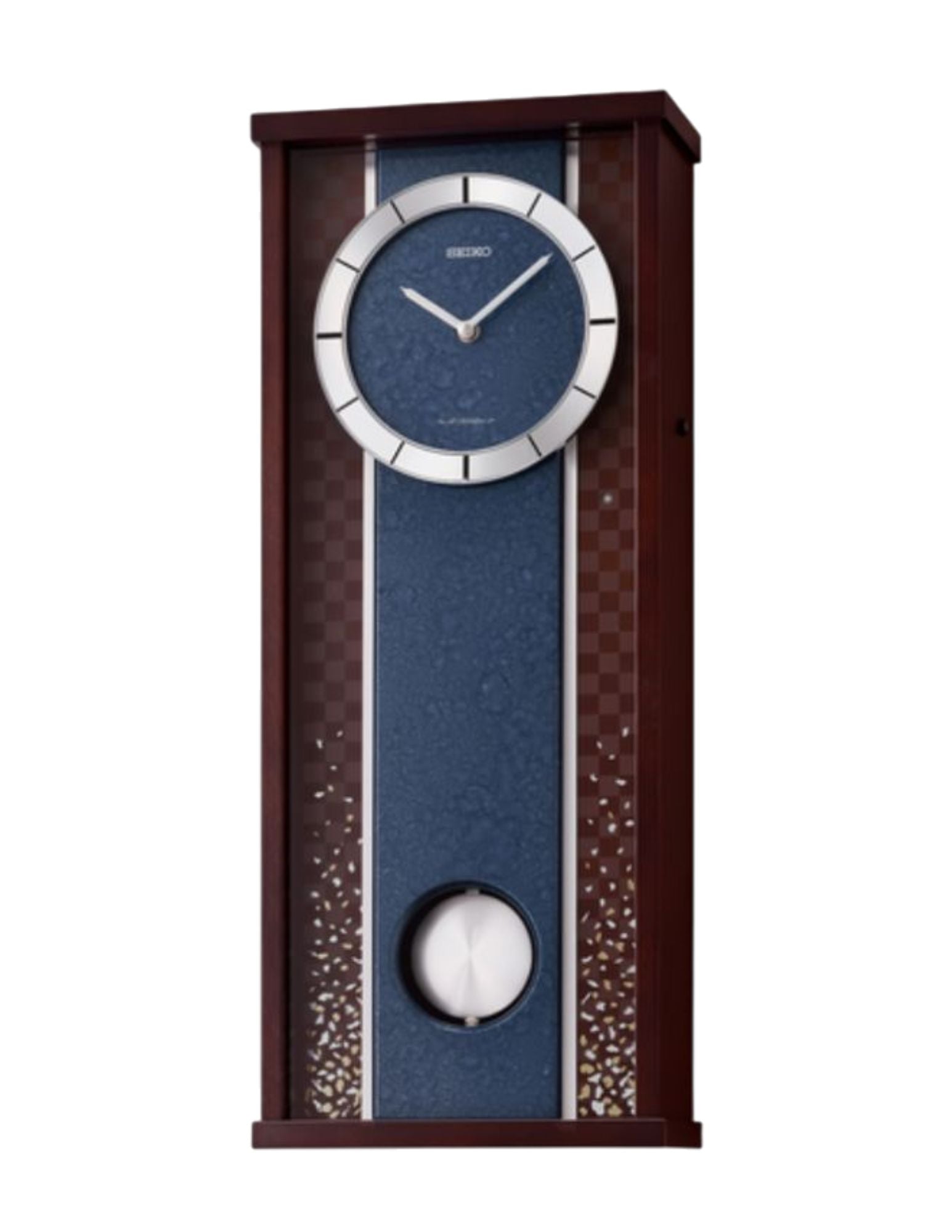 Seiko Blue River Musical Pendulum Wall Clock is a modern and sophisticated pendulum clock which plays melodies. One the hour, the clock plays one of 18 finest quality sound melodies. A light sensor disengages all melodies when it becomes dark. A volume control button allows you to select just the high volume of sound.