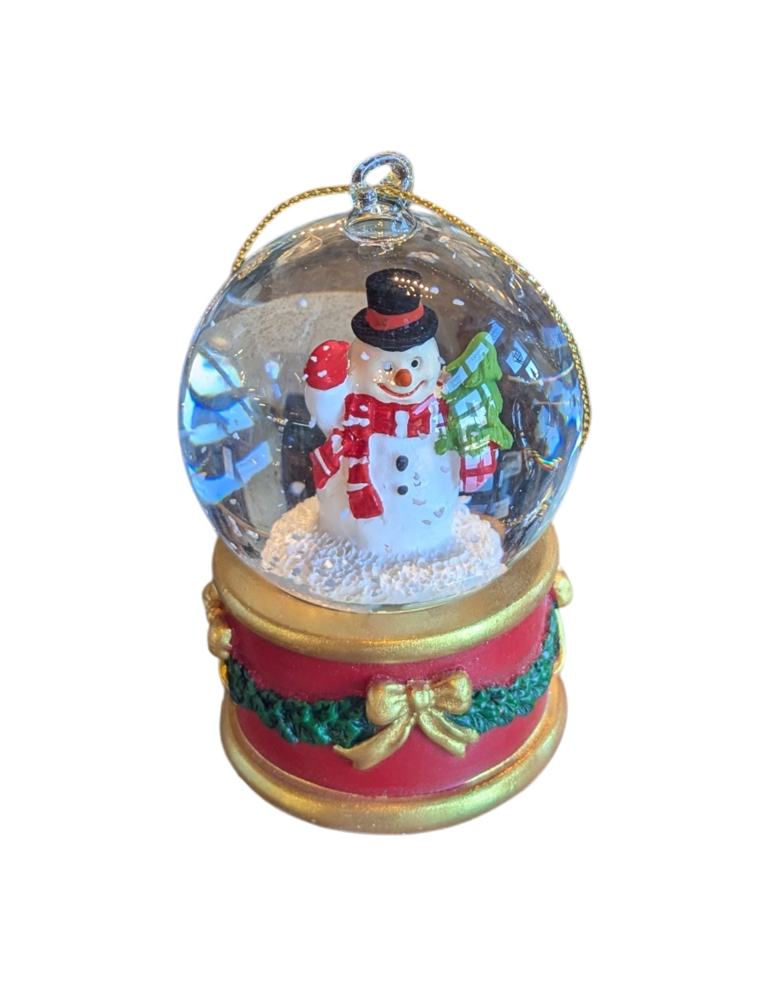 Hand blown glass makes this little guy the perfect addition to any Christmas tree! Push the button for a Christmas song to pay.