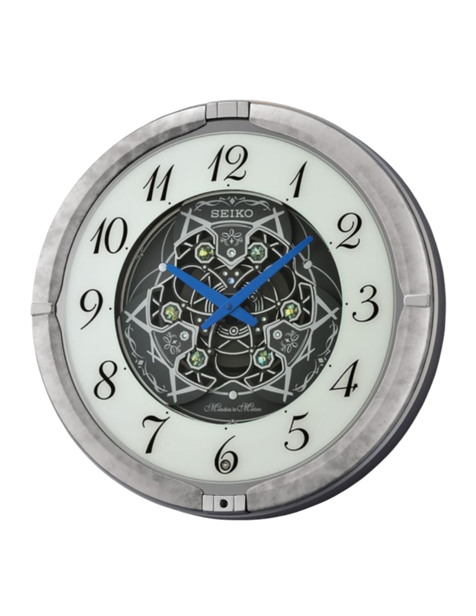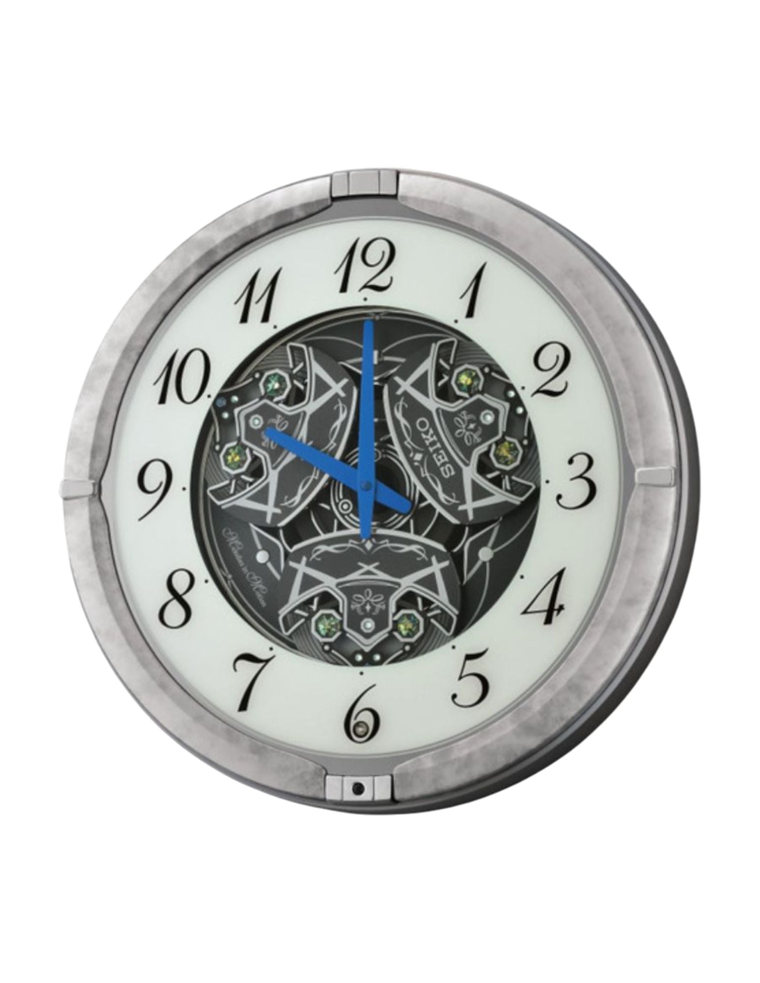 The Winter King Melodies In Motion Clock highlights the precision in gear movement. On the hour, the dial opens and turns, and plays one of thirty-six of the finest quality sound melodies plus an opening and ending melody.