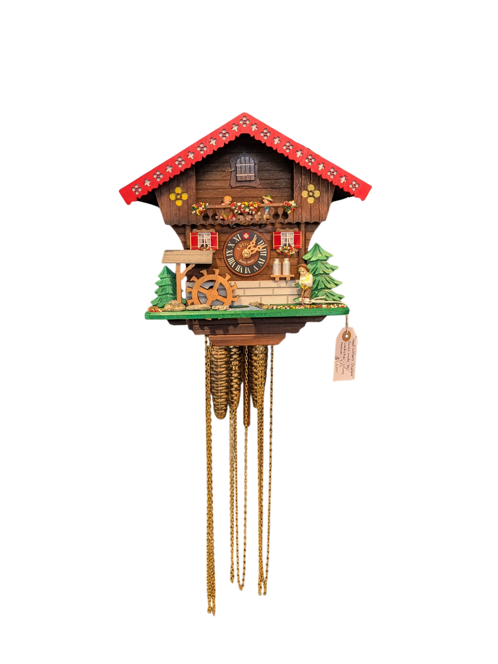 This brightly painted black forest cuckoo comes from the Swiss company Loetscher; be prepared to be blown away by the children sea sawing as the pendulum swings while you listen for the music every half hour and watch the water wheel spin!